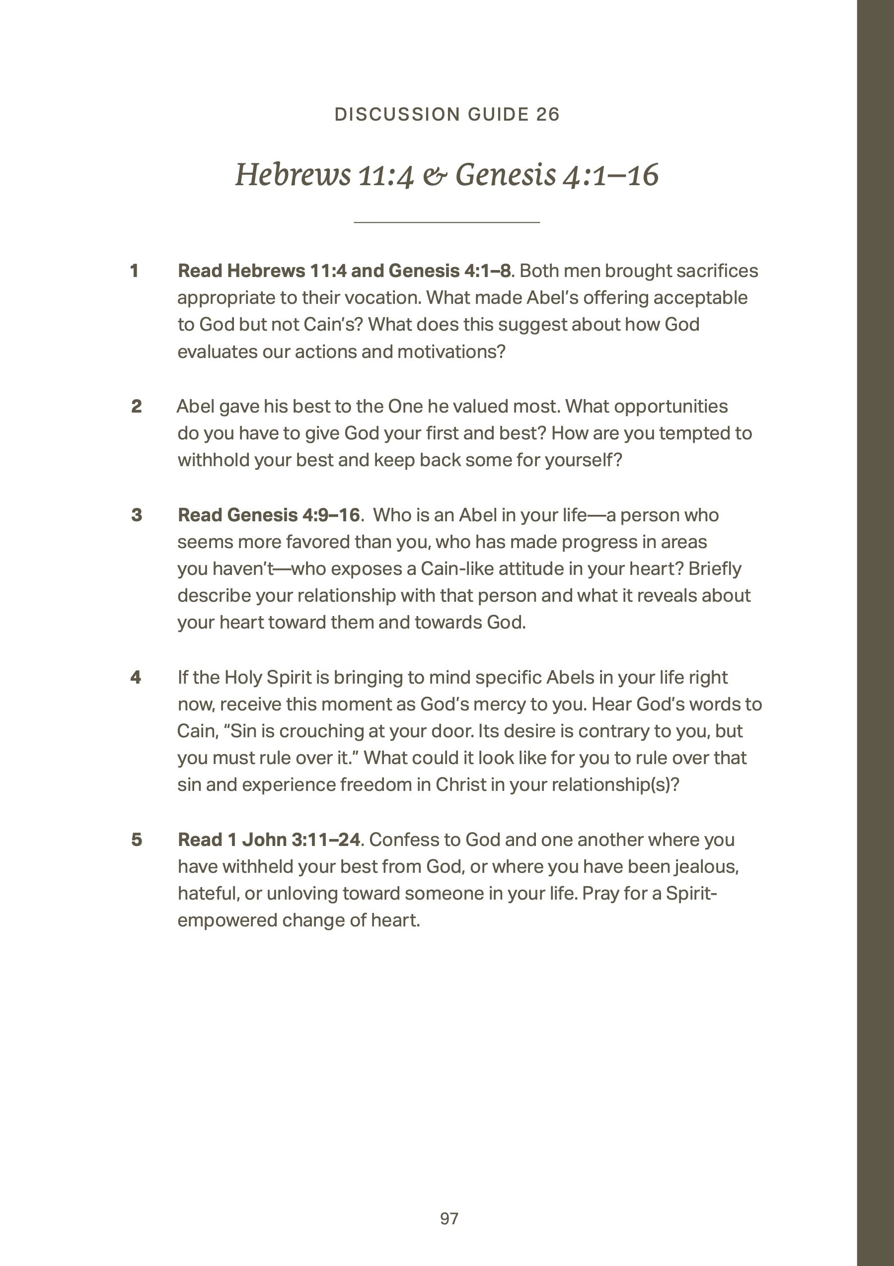 This resource was originally created to complement The Austin Stone's Hebrews sermon series but can be used at any time. Each session includes an individual study and a group discussion guide for Hebrews 8–11.